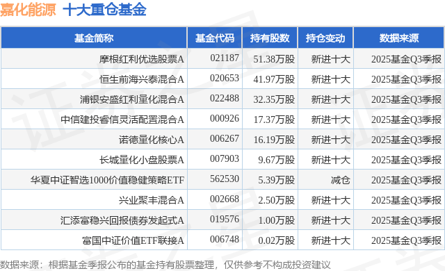 根据2025基金Q3季报公募基金重仓股数据,重仓该股的公募基金共10家,其中持有数量最多的公募基金为摩根基金(中国)的摩根红利优选股票A。摩根红利优选股票A目前规模为0.85亿元,最新净值1.1778(1月5日),较上一交易日下跌0.11%,近一年上涨7.7%。该公募基金现任基金经理为胡迪 何智豪 韩秀一。胡迪在任的基金产品包括:摩根动态多因子混合A,管理时间为2021年1月7日至今,期间收益率为2.91%;摩根标普港股通低波红利指数A,管理时间为2021年1月7日至今,期间收益率为62.53%;摩根恒生科技ETF(QDII),管理时间为2021年12月30日至今,期间收益率为10.84%;摩根标普港股通低波红利ETF,管理时间为2023年11月23日至今,期间收益率为61.4%。何智豪在任的基金产品包括:摩根标普港股通低波红利指数A,管理时间为2021年2月19日至今,期间收益率为55.31%;摩根恒生科技ETF(QDII),管理时间为2021年12月30日至今,期间收益率为10.84%;摩根标普港股通低波红利ETF,管理时间为2023年11月23日至今,期间收益率为61.4%;韩秀一在任的基金产品包括:摩根中证A50ETF,管理时间为2024年3月5日至今,期间收益率为32.9%;摩根中证A50ETF发起式联接A,管理时间为2024年4月3日至今,期间收益率为28.5%;摩根中证A500ETF,管理时间为2024年9月24日至今,期间收益率为22.9%。